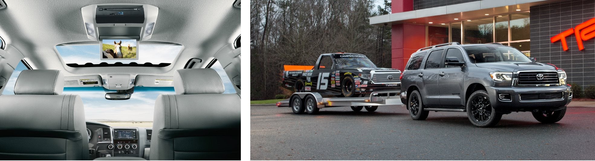 Inside the cabin, passengers ride in comfort and luxury. With rear-seat controls, second-row passengers get first-class amenities. Passengers will enjoy climate controls, auxiliary outlets, and a Blu-ray Disc entertainment system featuring a power outlet to keep all devices charged and ready to go. With comfortable seating for up to 8 passengers, the Sequoia has room for the whole family and even the pets. Easily make room for cargo by folding down the third-row seats with a press of a button. Get more out of your drive by opening the large moonroof and sliding sunshade. It doesn?t just open the cabin; it opens the entire experience.