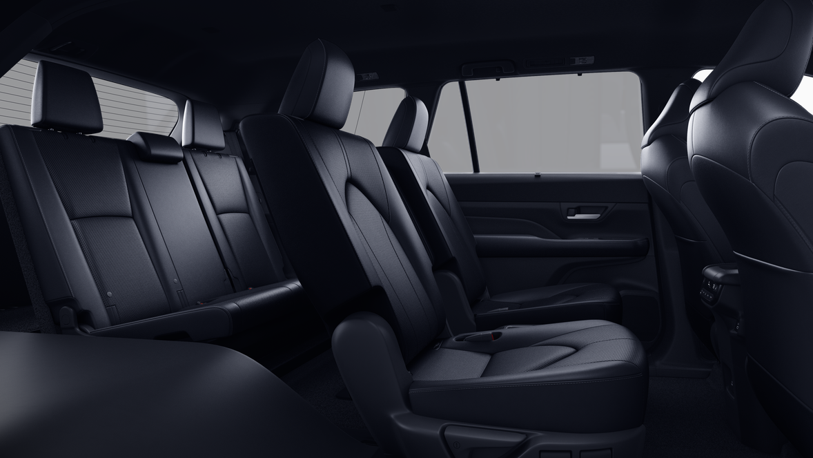 • 7-passenger seating with second-row fold-down captain's chairs and fold-down inboard armrests, adjustable headrests and two cup holders mounted on the floor; and 60/40 split, fold-down third-row seats with sliding headrests and recline function
