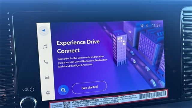 12. Cloud Navigation requires a trial or subscription to Drive Connect. Drive Connect availability and accuracy depend on certain factors outside of Toyota's control in order to operate, including 4G network availability, a cellular connection and GPS signal. Without any one or more of these things, operability may be limited or precluded. Services subject to change at any time without notice. Requires app download/registration and subscription after trial (if applicable). Terms of Use apply. Data charges may apply. See Ownerās Manual and https://www.toyota.com/connected-services/ for limitations. To learn about Toyota's Connected Services data collection, use, sharing and retention practices, visit https://www.toyota.com/support/privacy-notice/.