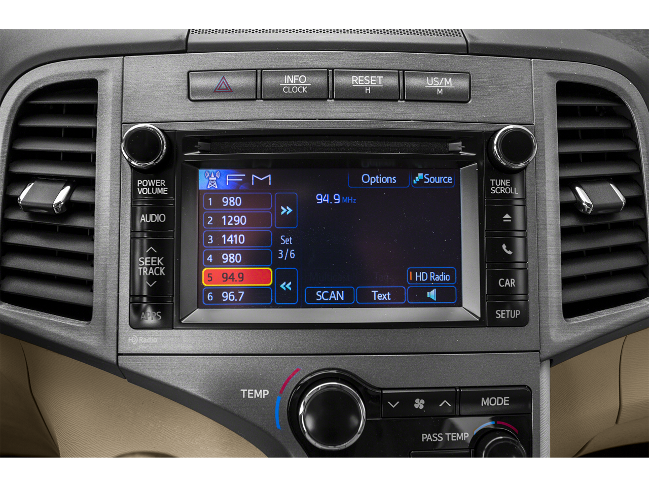 - Radio: Entune Premium Audio w/Nav & App Suite -inc: a 6.1" high resolution touch-screen w/split screen display, AM/FM CD player w/MP3/WMA playback capability, 6 speakers, auxiliary audio jack, USB 2.0 port w/iPod connectivity and control, advanced voice recognition, hands-free phone capability, phonebook access, music streaming via BluetoothĀ® wireless technology, Entune App Suite, HD Radio, HD predictive traffic and doppler weather overlay, AM/FM cache radio, SiriusXM Radio w/90-day complimentary trial, Gracenote album cover art and integrated backup camera display w/projected path