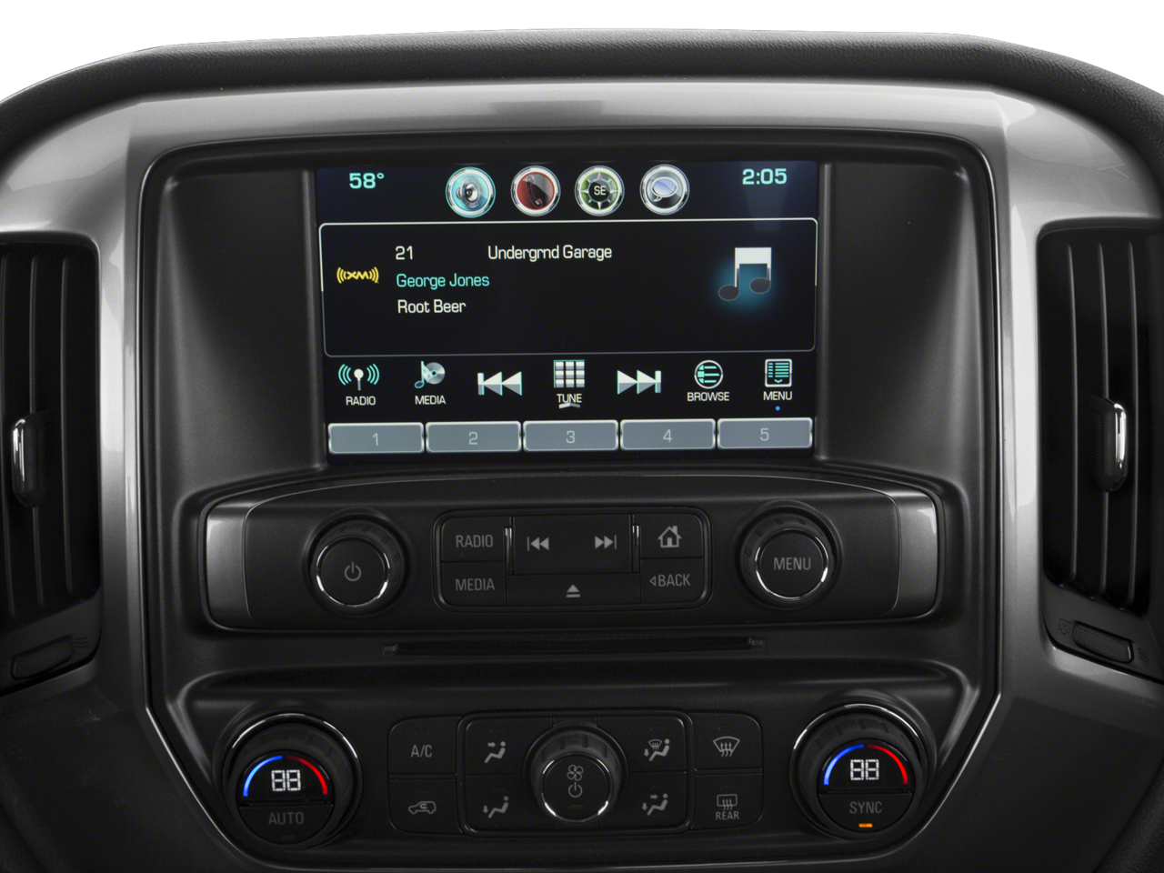 - Audio system, Chevrolet MyLink Radio with 8" diagonal color touch-screen, AM/FM stereo with seek-and-scan and digital clock, includes BluetoothĀ® streaming audio for music and select phones; USB ports; auxiliary jack; voice-activated technology for radio and phone; and Shop with the ability to browse, select and install apps to your vehicle. Apps include Pandora, iHeartRadio, The Weather Channel and more.
