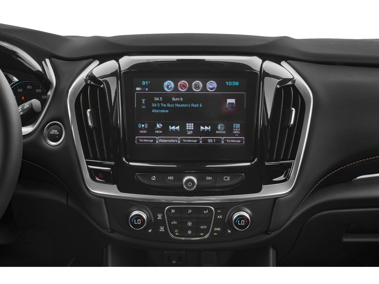 - Audio system, Chevrolet Infotainment System with 8" diagonal color touch-screen and AM/FM stereo, includes BluetoothĀ® streaming audio for music and most phones; featuring Android Auto and Apple CarPlay capability for compatible phones