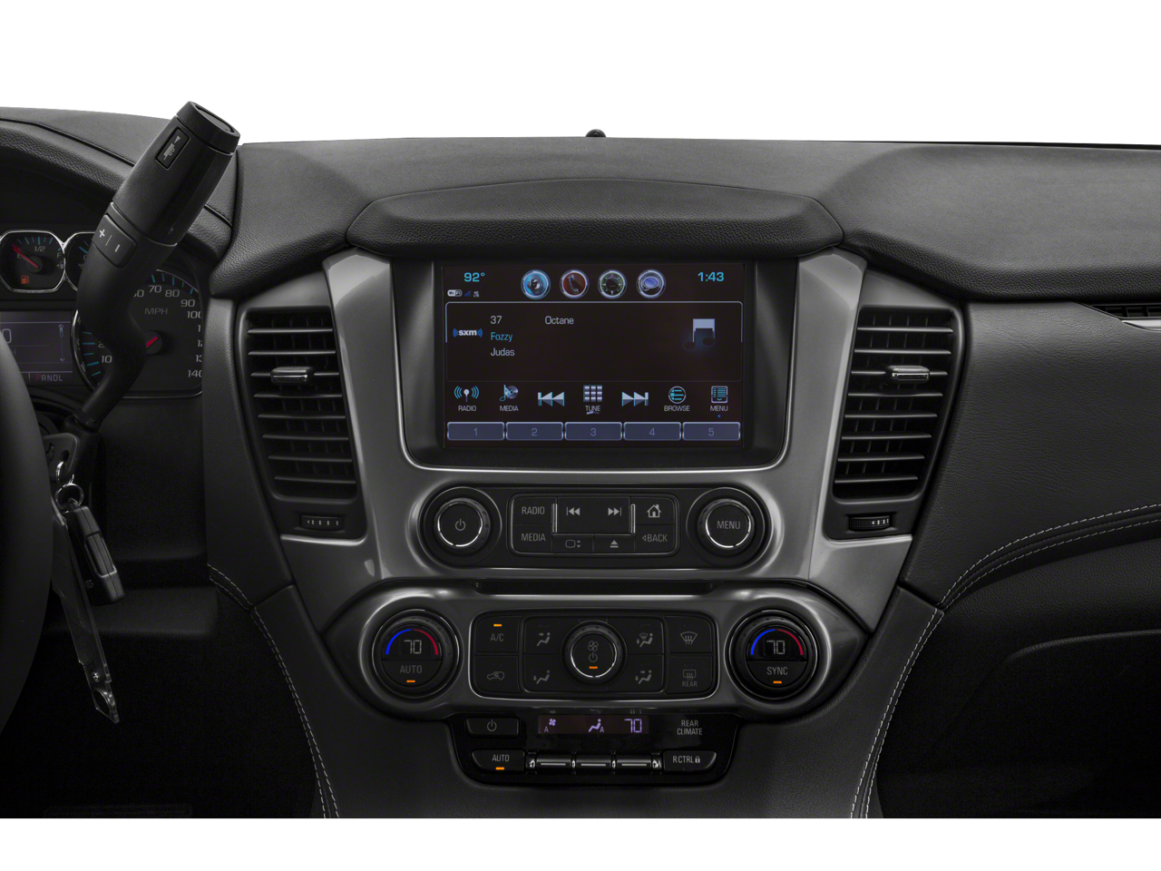 - Audio system, 8" diagonal color touch-screen with Chevrolet Infotainment AM/FM stereo with seek-and-scan and digital clock, includes BluetoothĀ® streaming audio for music and select phones; voice-activated technology for radio and phone; and Shop with the ability to browse, select and install apps to your vehicle. You can customize your content with audio, weather and more; featuring Apple CarPlay and Android Auto capability for compatible phone; 5 USB ports and 1 auxiliary jack