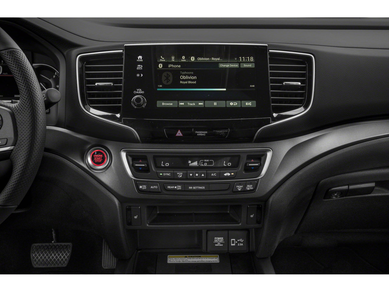- Radio: 215-Watt Audio System w/7 Speakers -inc: subwoofer, 8" display audio w/high-resolution electrostatic touch-screen and customizable feature settings, BluetoothĀ® HandsFreeLink, BluetoothĀ® streaming audio, MP3/auxiliary input jack in center console, Radio Data System (RDS), Speed-Sensitive Volume Compensation (SVC), (3) 2.5-amp USB charging ports, HondaLink, Apple CarPlay integration, Android Auto integration, CabinControl remote compatibility, SMS text message function, SiriusXM, HD Radio, wireless phone charger and 2.5-amp USB smartphone/audio interface port in front console SiriusXM services require a subscription after any trial period. wireless phone charger is compatible with both Qi and Powermat wireless charging standards. Check with your device's manufacturer for wireless capability.