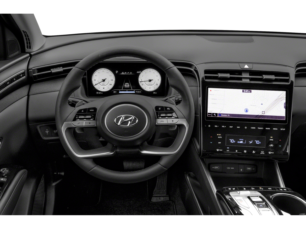 - Radio: Bose Premium w/AM/FM/HD/SiriusXM Audio System -inc: 10.25" color touchscreen w/onboard navigation and traffic flow including incident data via HD radio (HERE) (AVN 5.0), 8 speakers (1 twiddler on center of instrument panel, 2 tweeters, 2 front door, 2 rear door, 1 woofer on rear quarter panel), digital 8 channel amp w/custom equalization, digital signal processing and dynamic speed compensation, Blue Link connected car, Android Auto and Apple CarPlay, USB outlets and BluetoothĀ® w/voice recognition