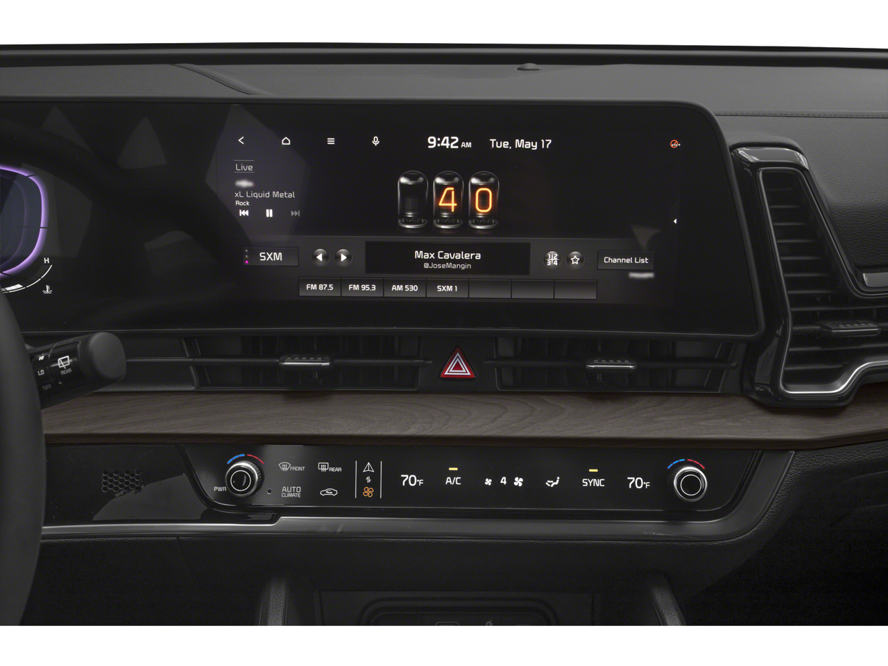 - Radio: AM/FM/HD Audio System -inc: 12.3" touchscreen w/navigation, 6 speakers, wired Apple Carplay and Android Auto, UVO telematics, voice recognition, SiriusXM, steering wheel mounted audio controls and BluetoothĀ® phone and streaming audio