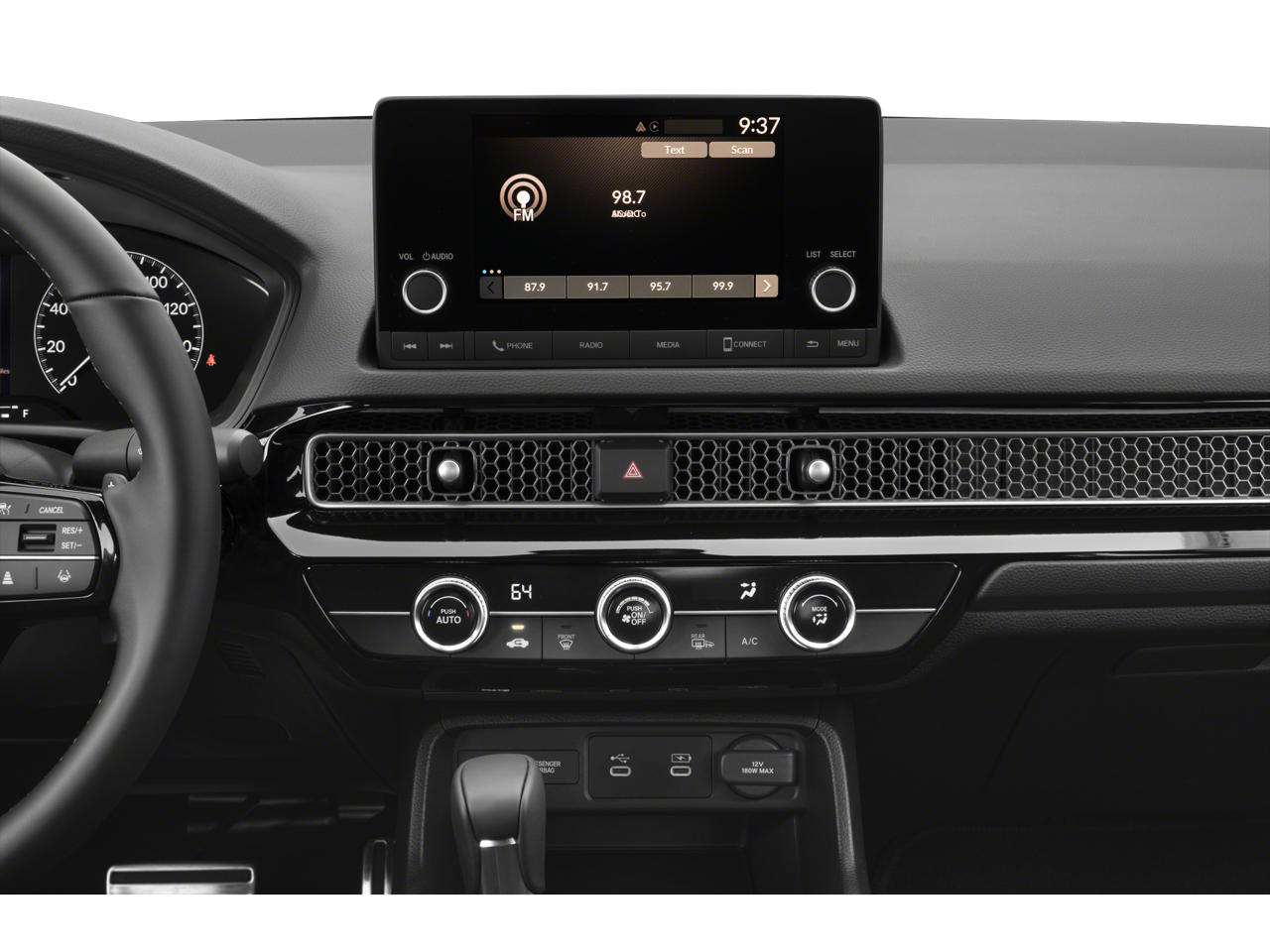 - Radio: 180-Watt Audio System -inc: 8 speakers, 7" color touchscreen, BluetoothĀ® HandsFreeLink and streaming audio, HondaLink, Speed-Sensitive Volume Compensation (SVC), Radio Data System (RDS), Apple CarPlay and Android Auto compatibility and USB-C 3.0A smartphone/audio interface/charging port in front seats